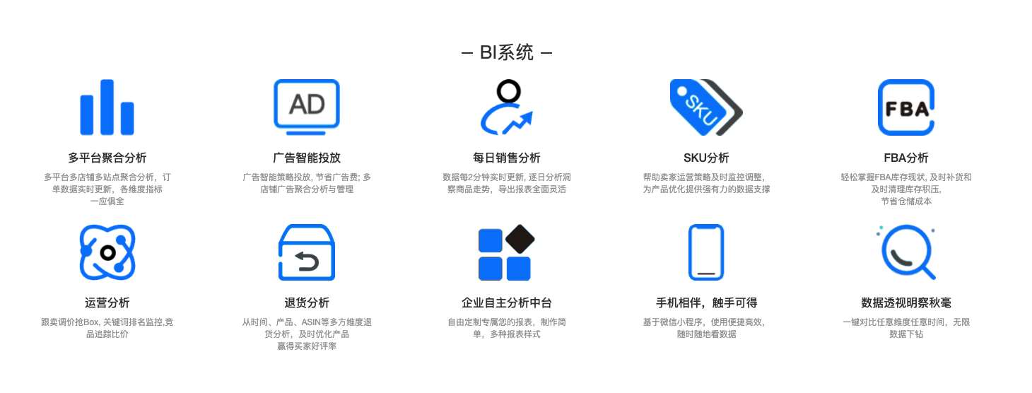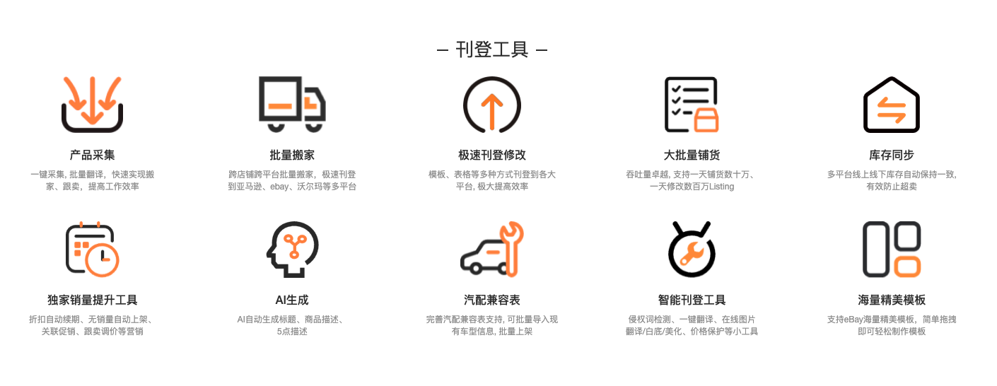 针对eBay,亚马逊,沃尔玛平台量身打造软件功能,并持续不断上线新功能