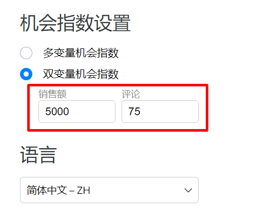 设置销售额为5000,评论数为75,则表示前 10 名搜索结果中有多少卖家的总收入至少为 5,000 美元,有多少卖家的评论数低于75。