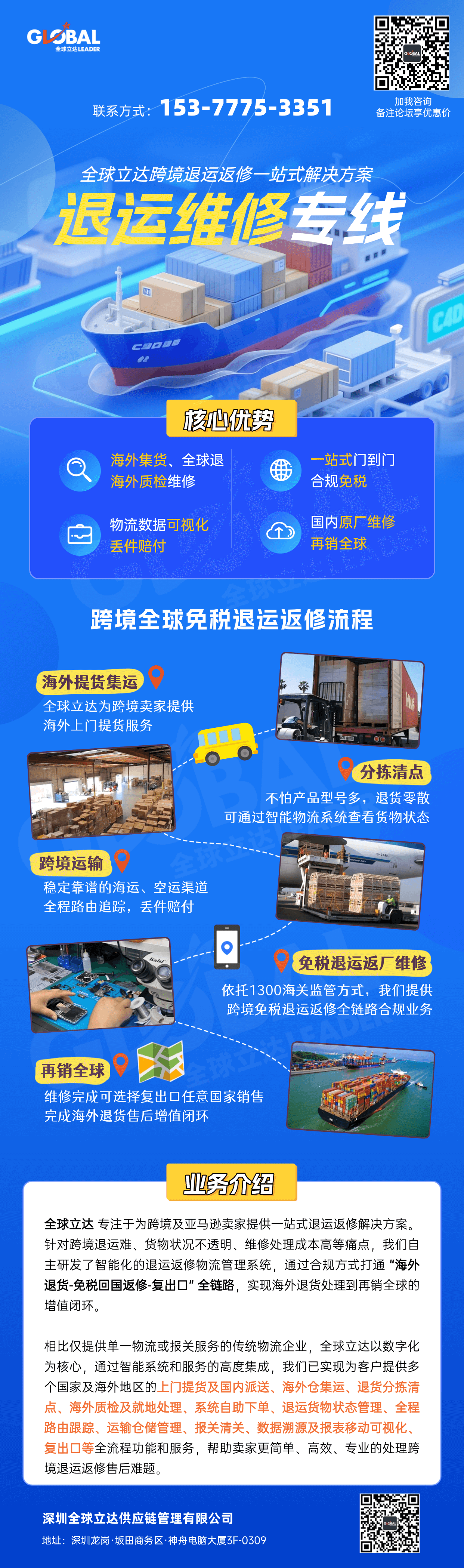 • 支持海外质检维修,针对需要深度维修的货物无需关税即可退运回国原厂返修