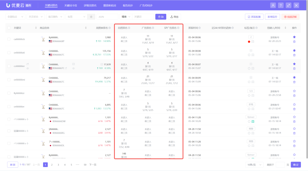 比如,我们可以用优麦云工具监控我们的自然排名,特别是我们的核心词排名的变动。
