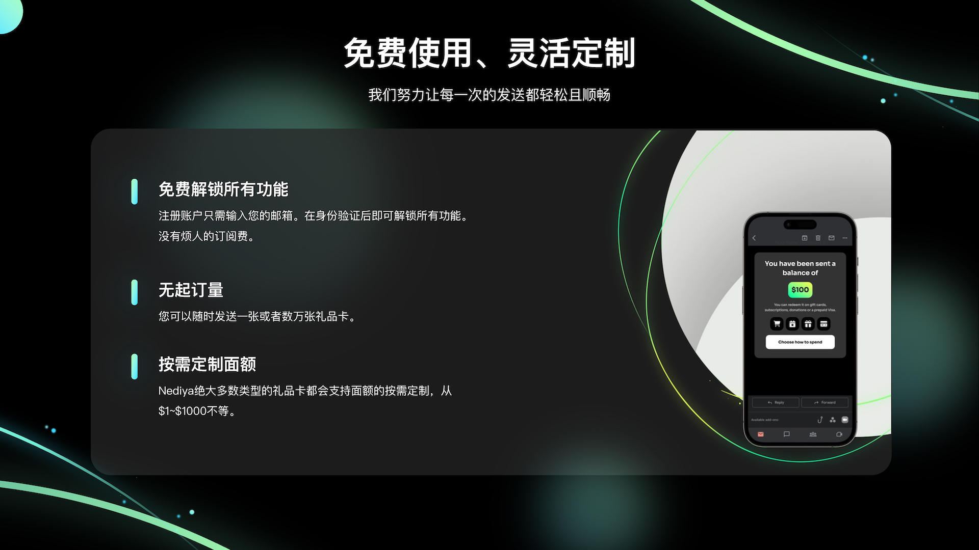 通过邮件批量发送功能,Nediya能够大幅减少人工操作,提升工作效率,让您轻松管理大规模礼品卡发放任务,节省时间和人力成本。
